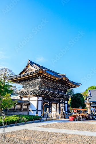 Fototapeta premium 秋の成田山新勝寺 総門 千葉県成田市 Naritasan Shinshoji Temple in autumn. Sōmon. Chiba Pref, Narita City.