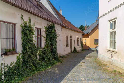 Fototapeta premium narrow alley in a small Czech town with cobblestones and typical South...