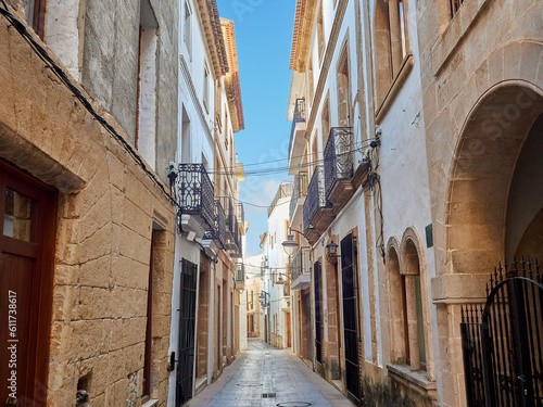 Fototapeta premium Narrow alley in the historical city centre of Javea. Jávea, Xàbia in...