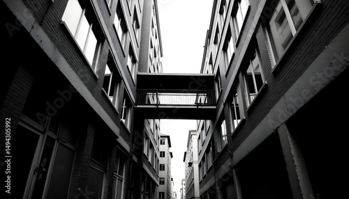 Obraz premium Narrow alleyway bridging two apartment buildings