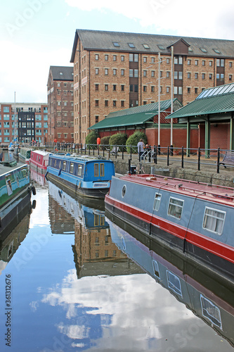 Fototapeta premium Narrow boats in Gloucester Docks Canal Basin, England