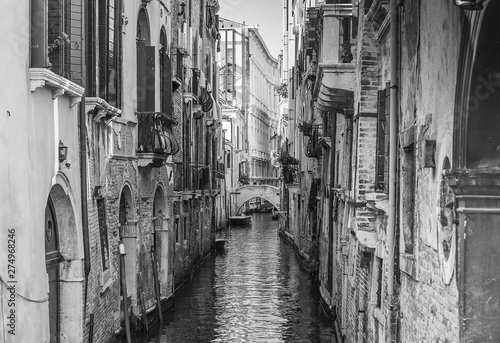 Fototapeta premium Narrow canal among old colorful brick houses in Venice, Italy.