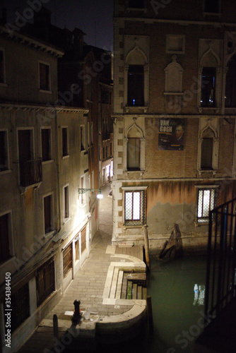 © Anna, Naklejka premium Narrow canals in Venice at night. Italy.