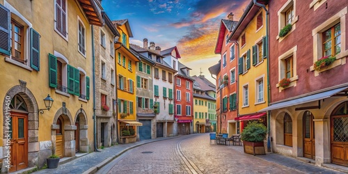 Fototapeta premium Narrow cobblestone streets lined with colorful buildings in historic Annecy,...