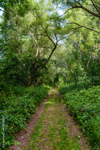 Fototapeta premium narrow countryside forest road with gravel surface