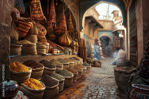 Fototapeta premium Narrow market alley with handcrafted goods and pottery
