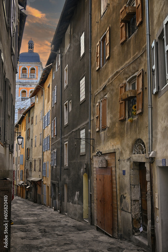 © Ken, Fototapeta premium Narrow Medieval street at dusk