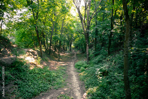 © Klochkov, Naklejka premium Narrow path through dense green forest