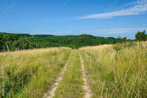 © YouAreBeautiful, Fototapeta premium Narrow Path through Tall Wild Grass Leading to Forest