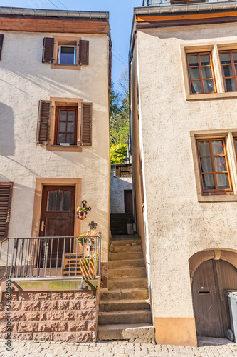 Fototapeta premium Narrow stairs between two houses in Vianden, Luxembourg