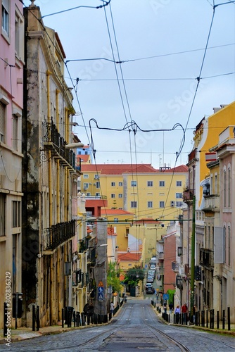 Fototapeta premium Narrow street in the Lisbon city Portugal 30.Oct.2019 It is famous for its...