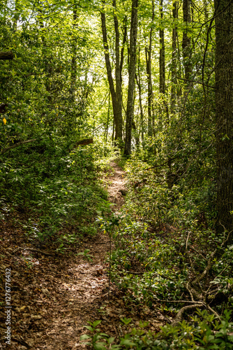 Fototapeta premium Narrow Trail Cuts Uphill Through Forest In Smoky Mountains