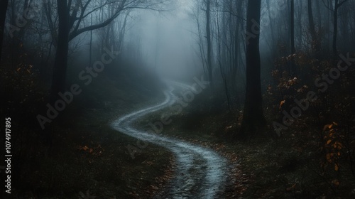 Obraz premium Narrow, winding path disappearing into thick darkness