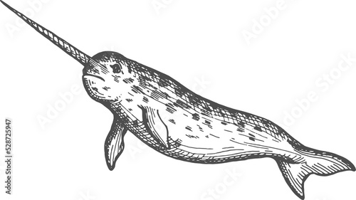 Fototapeta premium Narwhale or narwhal whale isolated large fish icon