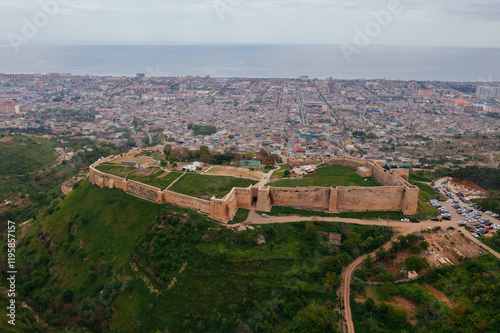 © Mulderphoto, Fototapeta premium Naryn-Kala fortress in Derbent, Dagestan, Russia, aerial view