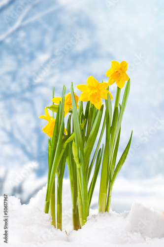 Naklejka premium Narzissen brechen durch Schneedecke