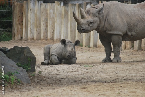 © olly k, Obraz premium Nashornmutter mit Kind