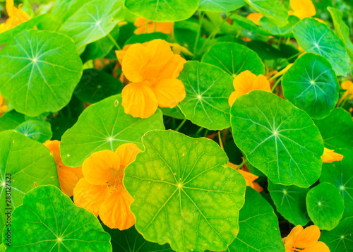 © Дарья Колпакова, Obraz premium Nasturtium flower grows in the natural environment.