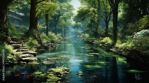 © GenerativeAIpicture, Obraz premium National Canal Conservation Day 20th September Generative AI