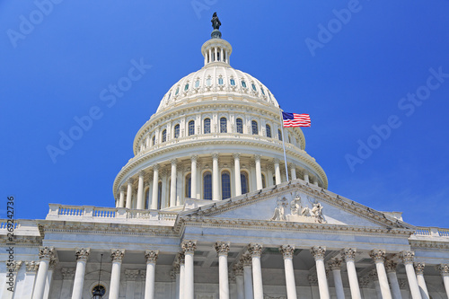Obraz premium National Capitol building with US flag in Washington DC, USA