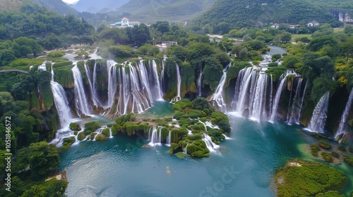 © 熙妍 杨, Fototapeta premium National Clear Waterfall Scenery - a majestic and refreshing visual. The national clear waterfall scenery presents a stunning and awe-inspiring natural scene, with the cascading waters creating a beau