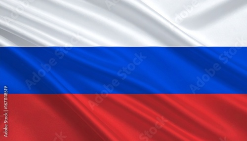 Fototapeta premium National flag of Russia with three horizontal stripes—white, blue, and red—on flowing fabric with silky texture, symbolizing Russian identity and sovereignty.