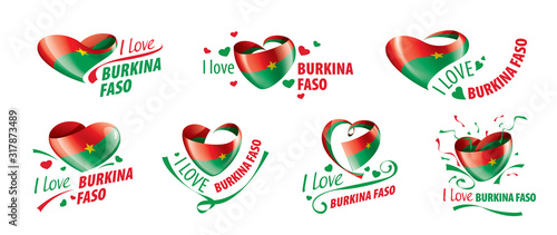 Naklejka premium National flag of the Burkina Faso in the shape of a heart and the inscription...