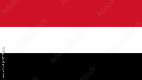 Naklejka premium National flag of Yemen proudly displayed under a clear blue sky in a vibrant...