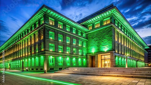 Naklejka premium National Library Week celebration with green bricks illuminated by lights and...