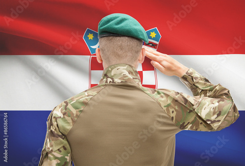 © niyazz, Obraz premium National military forces with flag on background conceptual series - Croatia