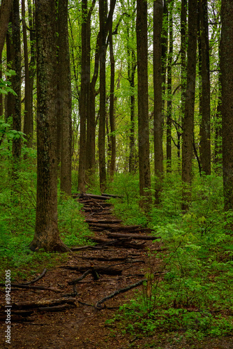 Obraz premium National Park lush green forest with a path in the month of May