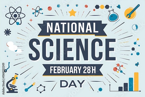 Fototapeta premium National Science Day Colorful Illustration with Space and Science Elements