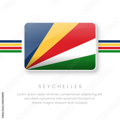 © GraphixTreasure, Obraz premium National Seychelles Flag.Vector Seychelles Button Flag. Realistic National Flag Design and Vector Template