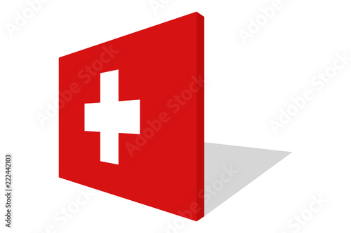 Obraz premium National switzerland flag in 3d perspective.White cross on red background.
