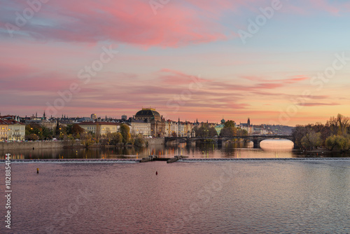 Naklejka premium National Theatre and other old buildings and Vltava River in Prague, Czech...