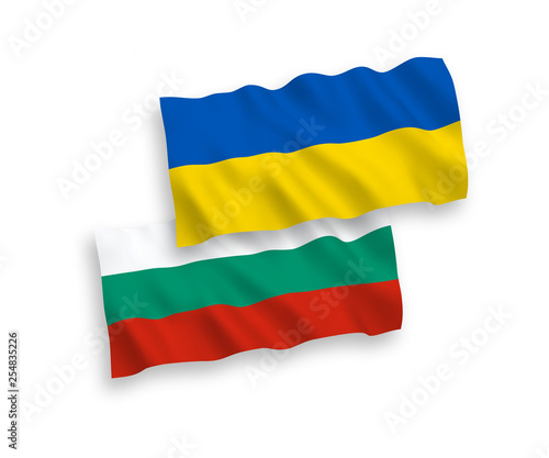 Obraz premium National vector fabric wave flags of Bulgaria and Ukraine isolated on white...