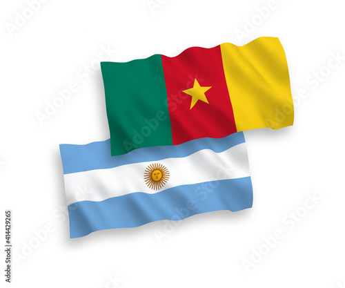 © epic, Fototapeta premium National vector fabric wave flags of Cameroon and Argentina isolated on white background. 1 to 2 proportion.