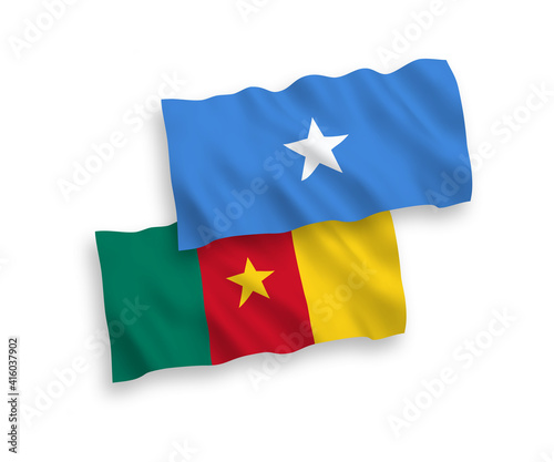Fototapeta premium National vector fabric wave flags of Cameroon and Somalia isolated on white background. 1 to 2 proportion.