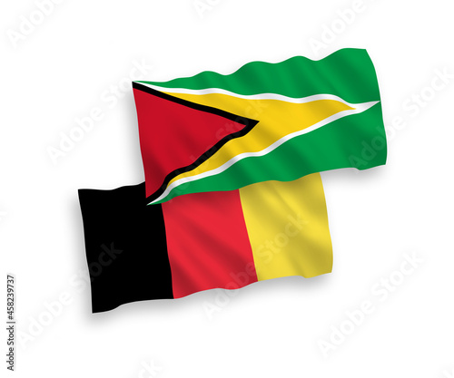 Obraz premium National vector fabric wave flags of Co-operative Republic of Guyana and Belgium isolated on white background. 1 to 2 proportion.
