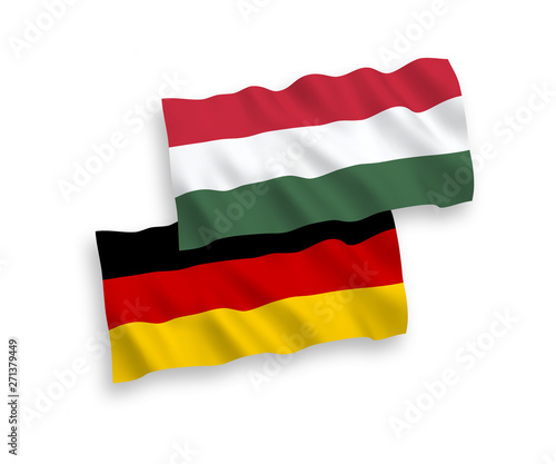 Naklejka premium National Vector Fabric Wave Flags of Germany and Hungary Isolated on White Background. 1 to 2 proportion.