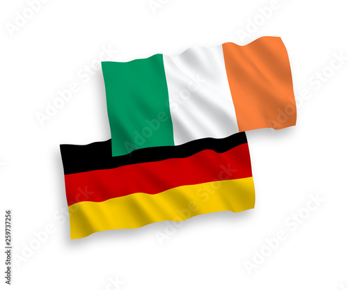 © epic, Fototapeta premium National Vector Fabric Wave Flags of Germany and Ireland Isolated on White Background. 1 to 2 proportion.