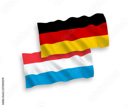 © epic, Naklejka premium National vector fabric wave flags of Germany and Luxembourg isolated on white background. 1 to 2 proportion.