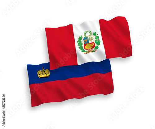 Fototapeta premium National vector fabric wave flags of Liechtenstein and Peru isolated on white background. 1 to 2 proportion.