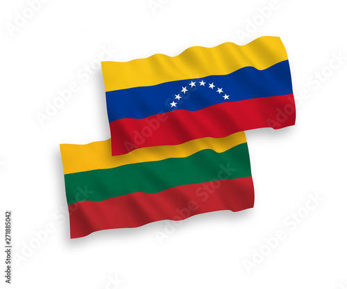 © epic, Fototapeta premium National vector fabric wave flags of Lithuania and Venezuela isolated on white background. 1 to 2 proportion.
