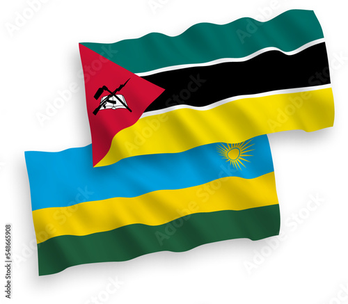© epic, Obraz premium National vector fabric wave flags of Republic of Rwanda and Republic of Mozambique isolated on white background. 1 to 2 proportion.