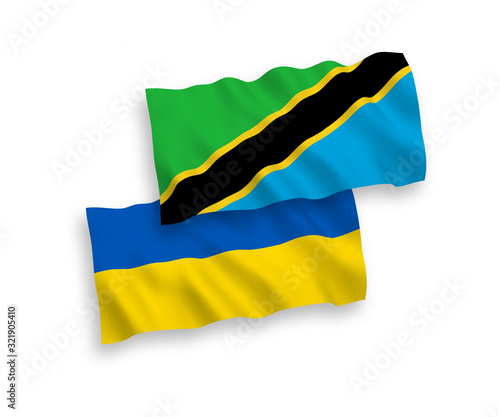 Obraz premium National vector fabric wave flags of Tanzania and Ukraine isolated on white background. 1 to 2 proportion.