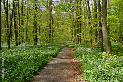 © Lawiesen, Obraz premium Nationalpark Hainich – Bärlauchblüte am Wanderweg Craulaer Kreuz