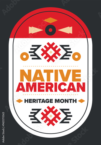 © scoutori, Naklejka premium Native American Heritage Month in November. American Indian culture. Celebrate annual in United States. Tradition pattern. Poster, card, banner and background. Vector ornament, illustration