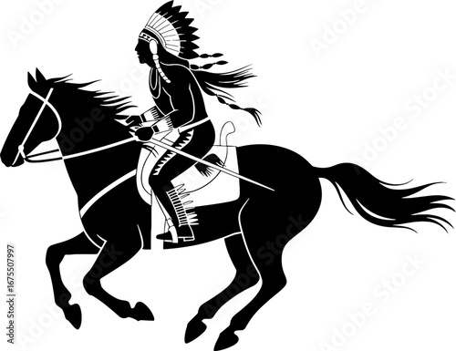 Obraz premium Native American Warrior Riding Horse Silhouette Illustration