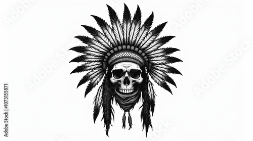 Obraz premium Native American Warrior with Feathered Headdress and Beaded Bandana